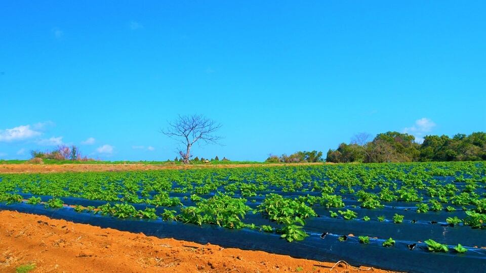 鹿児島県長島町の、諸浦島のイモ畑の写真です。